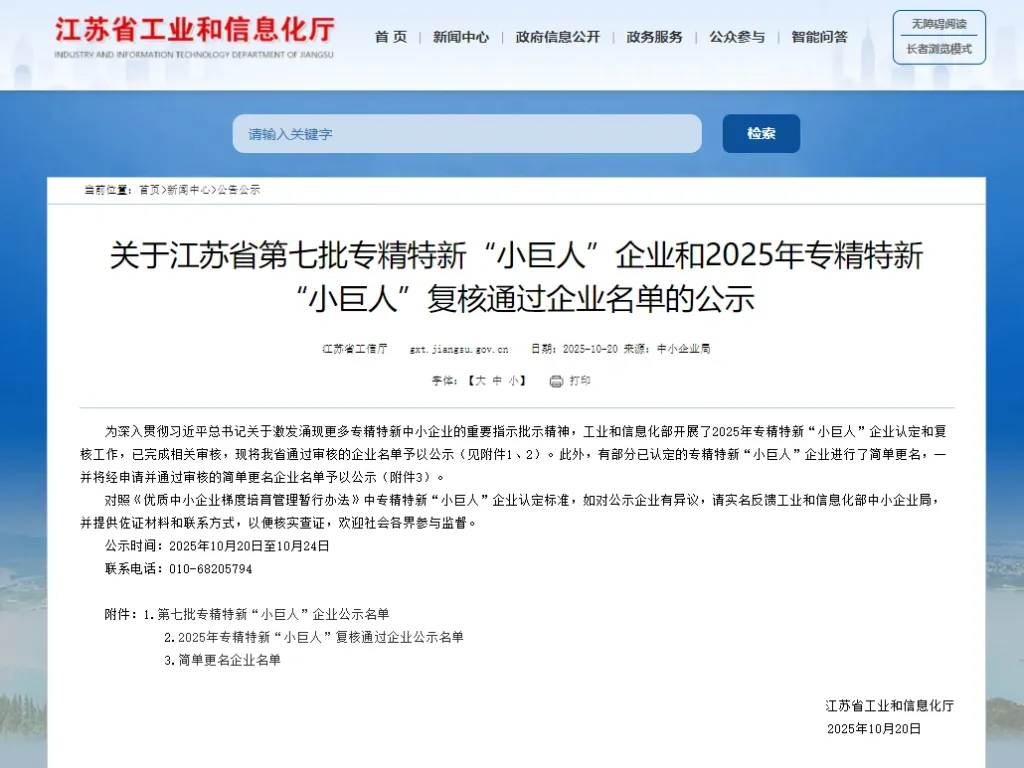 On October 20, the Ministry of Industry and Information Technology officially released the list of the seventh batch of Specialized, Sophisticated, and Innovative SME Giants, along with the list of enterprises that passed the 2025 reassessment. Jiangsu Origination Electron Co., Ltd. successfully passed the reassessment, thanks to its profound technological expertise in automation fields, continuous innovation capabilities, and outstanding market performance.